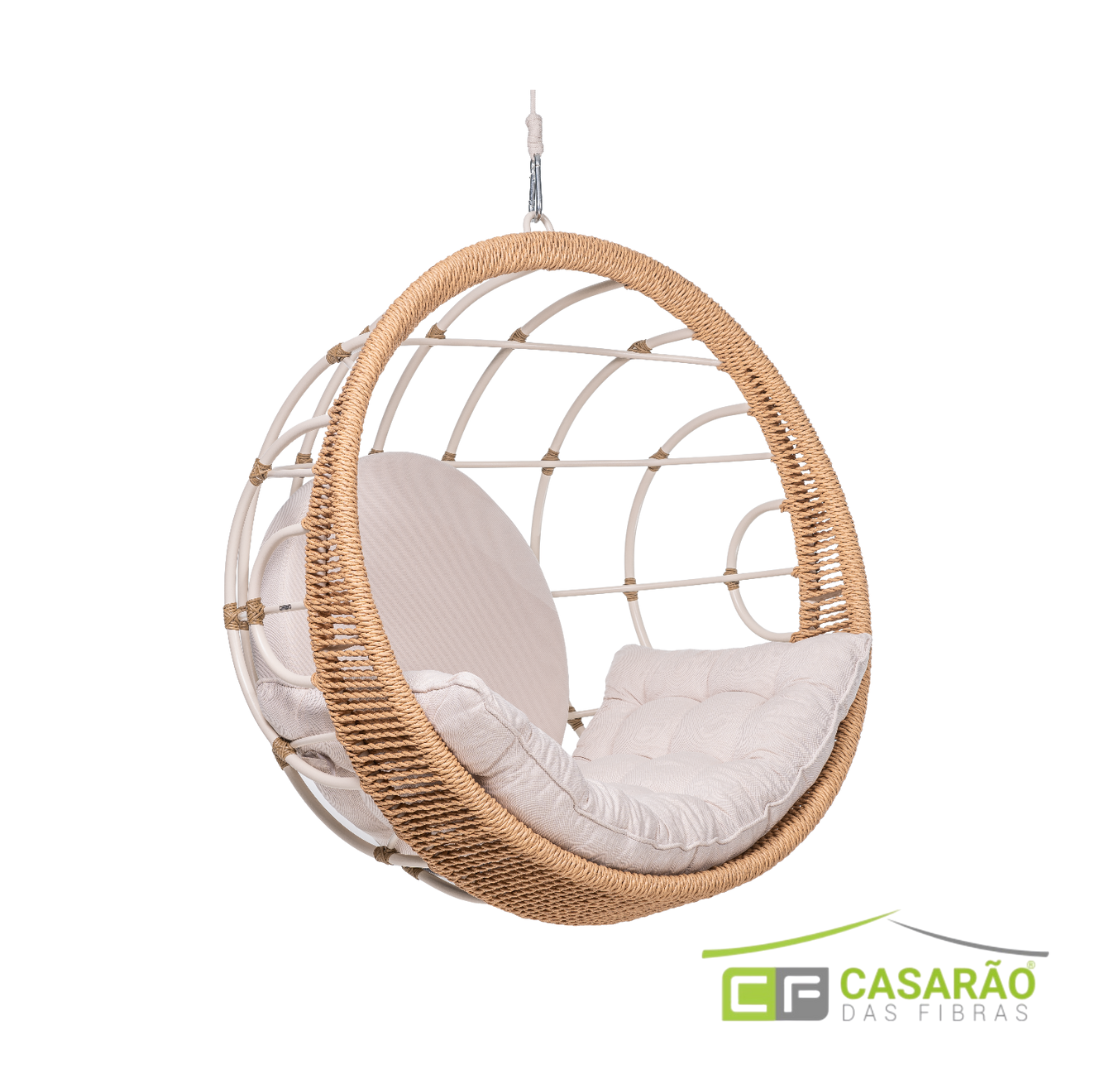 O balanço jurere corda náutica é perfeito para qualquer ambiente. Além disso, ele une elegância e resistência. Dessa forma, este balanço jurere traz sofisticação para varandas, jardins e áreas de lazer diversas. Igualmente, é feito com estrutura em alumínio com pintura eletrostática e revestimento artesanal em corda náutica, acompanha almofada confortável e suporte para instalação.