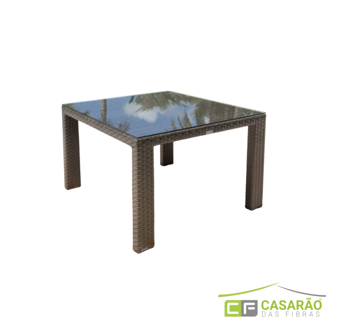 O tampo quadrado em vidro temperado completa o Modelo Quadro com elegância e funcionalidade. Por um lado, o vidro confere leveza visual à peça, equilibrando o peso visual da fibra grafite. Por outro lado, a superfície lisa facilita a limpeza e é prática para refeições ao ar livre. Dessa forma, o Modelo Quadro une estética contemporânea e praticidade do dia a dia. Portanto, ele é ideal tanto para uso casual quanto para receber convidados com estilo.
